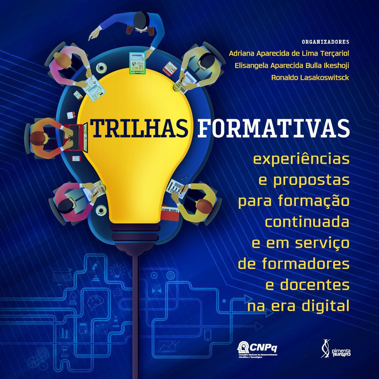 O livro Trilhas formativas: experiências e propostas para formação continuada e em serviço de formadores e docentes na era digital, apresenta relatos de experiências voltadas à formação continuada e em serviço dos professores, viabilizadas por meio de Trilhas Formativas (oficinas) e, consequentemente, a análise desse processo. A obra foi configurada em duas partes. A primeira delas intitulada Parte A – Relatos de experiências: a universidade vai à escola, descreve e analisa cinco intervenções ocorridas em uma escola pública e a segunda parte do livro, Parte B – Sequências didáticas: propostas para a formação de professores no on-line, apresenta treze sugestões de sequências didáticas, com o propósito de inspirar práticas que promovam o uso de Tecnologias Digitais de Informação e Comunicação em processos formativos de professores.